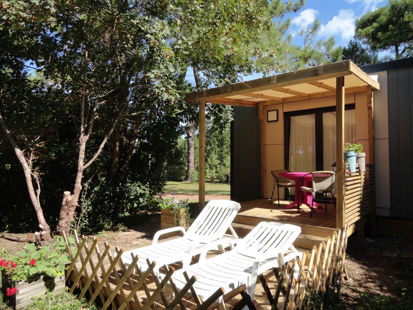 2 slaapkamers, 2 badkamers, 4 personen, 35 m²: - 1 slaapkamer met 1 160/200 bed, kledingkast, douchecabine, badmeubel, toilet - 1 slaapkamer met 2 80/200 bedden met tv, kledingkast, douchecabine, badmeubel, toilet - 1 eethoek met zitbank en tv - 1 keukengedeelte met tafel, 4-pits gaskookplaat, afzuigkap, magnetron, 2-deurs koelkast, opbergruimte - 1 terras van 22 m² (overdekt)
